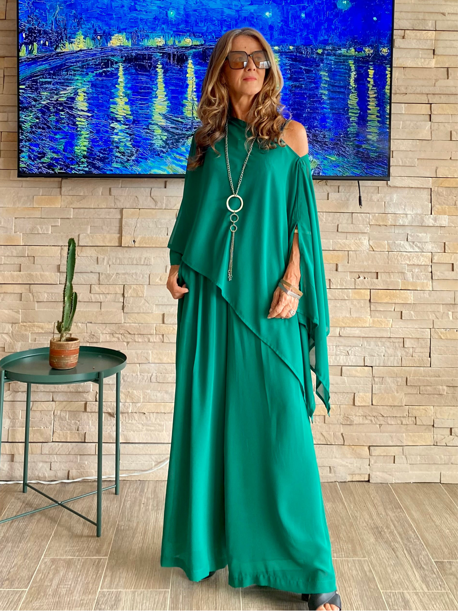 Este conjunto es ideal para un matrimonio, un evento especial o cualquier ocasión que requiera un look elegante, fresco y de calidad impecable. Elaborado en Chiffon una tela es ligera, fresca y con la ventaja de no arrugarse, lo que lo convierte en la opción perfecta para viajar y siempre lucir impecable.