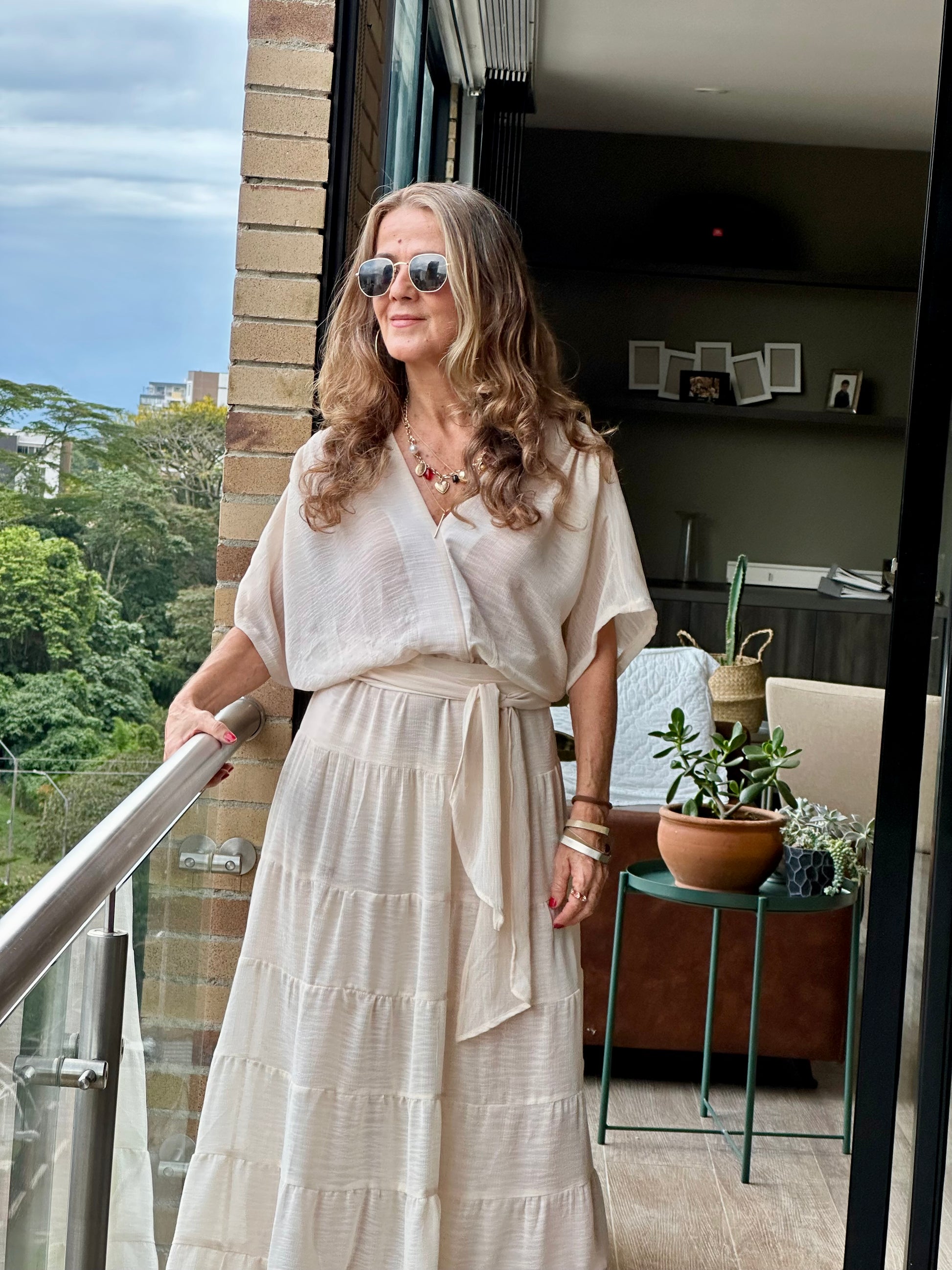 El Vestido Duna es una propuesta atemporal pensada para acompañarte con comodidad y estilo en tu día a día. Su diseño de tiempos largo, elaborado en chiflón croquelado, aporta movimiento, frescura y una caída ligera que fluye con el cuerpo.