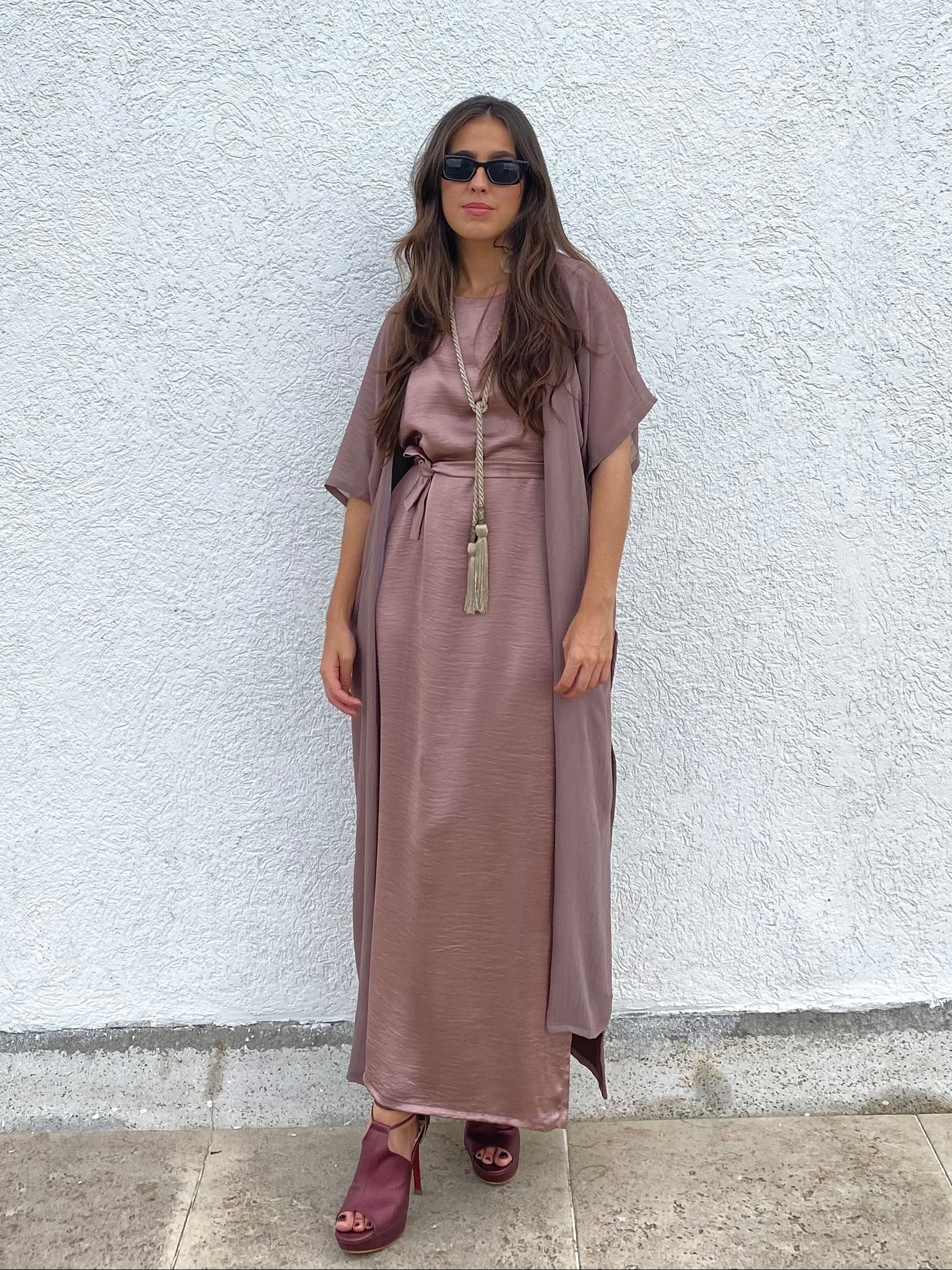 Puedes complementarlo con nuestro Kimono Gaia para un look más refinado, ideal para quienes prefieren cubrir los brazos sin perder estilo ni elegancia.